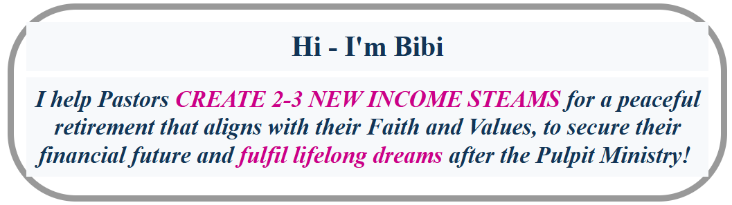 That’s why I created ‘Beyond The Pulpit – Retirement Planning for Pastors Ministers and Religious Leaders – Financial Blessings, Legacy, Health, Relevance, Wealth and Thriving after Ministry’.
